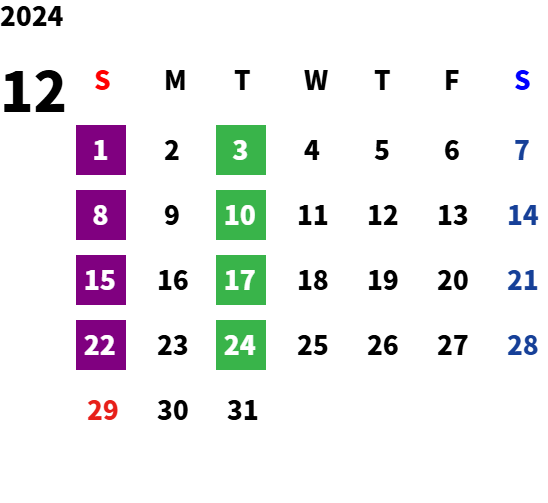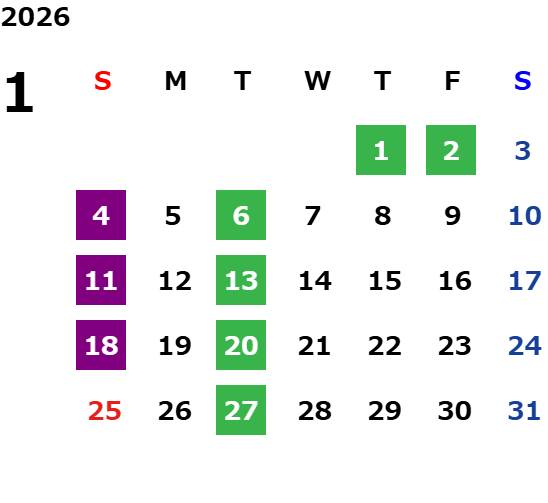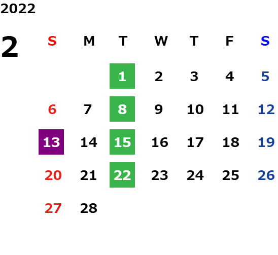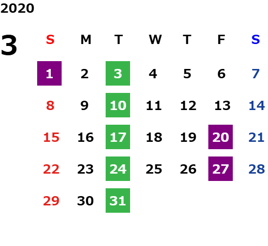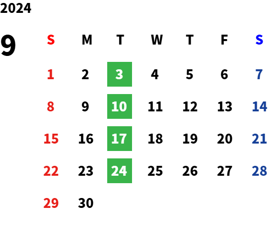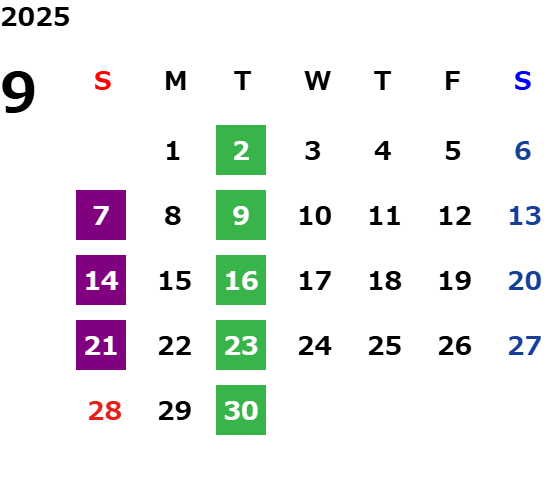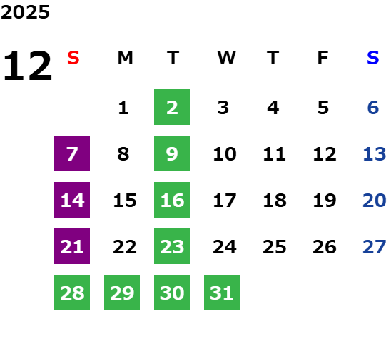 定休日:火曜日、毎月最終日曜日以外の日曜日(但し12/28は除きます)